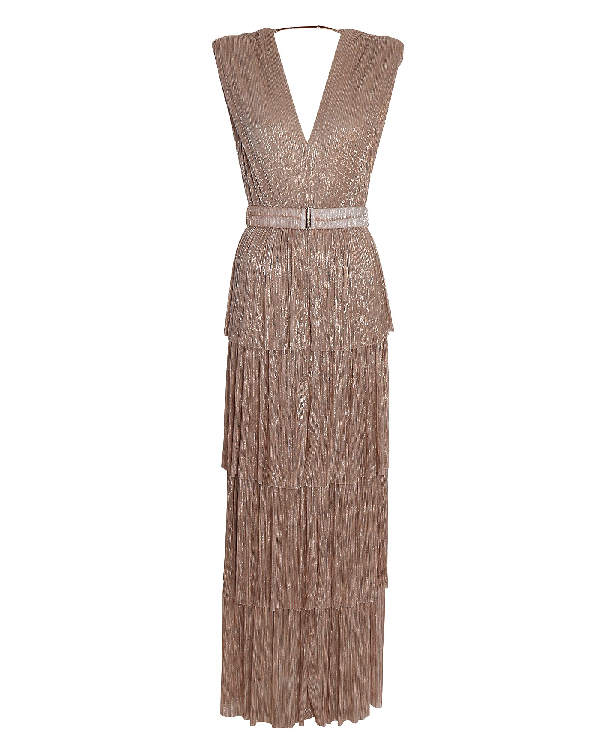 Sabina Musayev Synthetic Skyler Plisse Lurex Gown In Bronze Brown Lyst