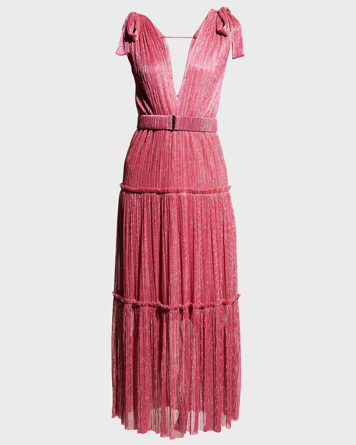 Sabina Musayev Helena Long Pleated Shimmer Dress Neiman Marcus
